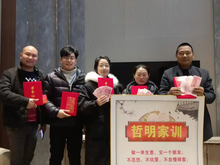 2021年度,公司各部门经过层层选拔,共评选出:优秀员工卢春香, 新人奖肖战、孙晓歌, 敬业奖黄如前, 销售 蒋永杰等一批优秀员工。此次表彰充分肯定了他们为公司作出的贡献和带头榜样,也是激励全体员工勇于创新、奋发向上的一种动力。